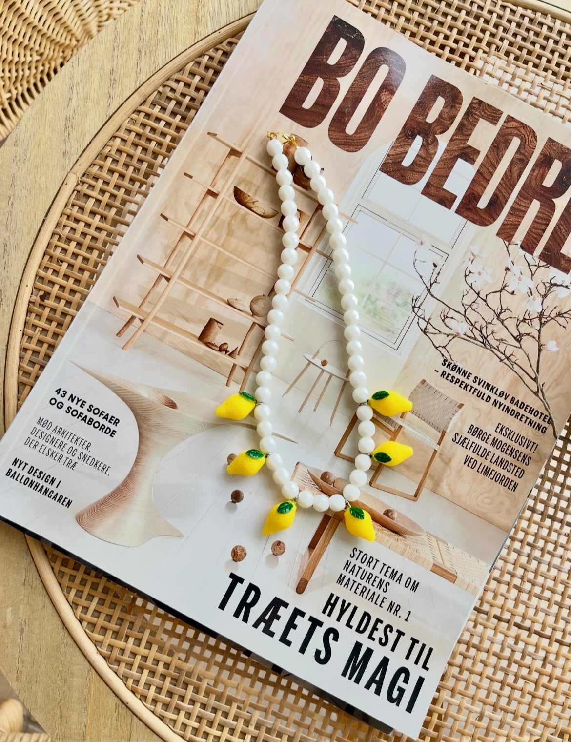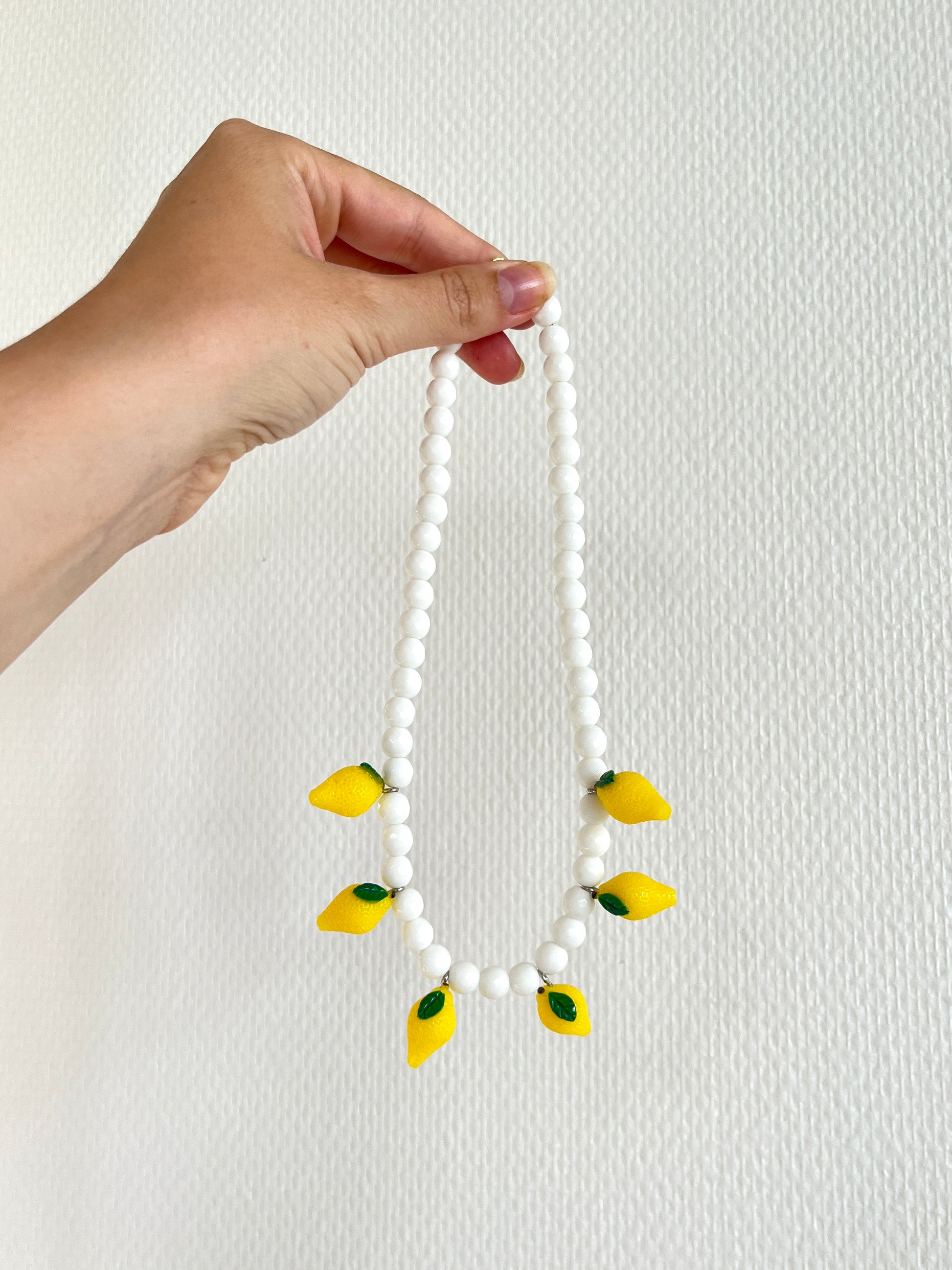 En sød perlehalskæde pyntet med små citroner 🍋✨ De hvide glas perler giver et klassisk og rent udtryk, mens de farverige citronvedhæng tilføjer sjov, charme og personlighed 🌞🌿 Perfekt til solrige dage, strandture eller bare når du har brug for lidt ekstra sprudlende energi i din stil 💛
